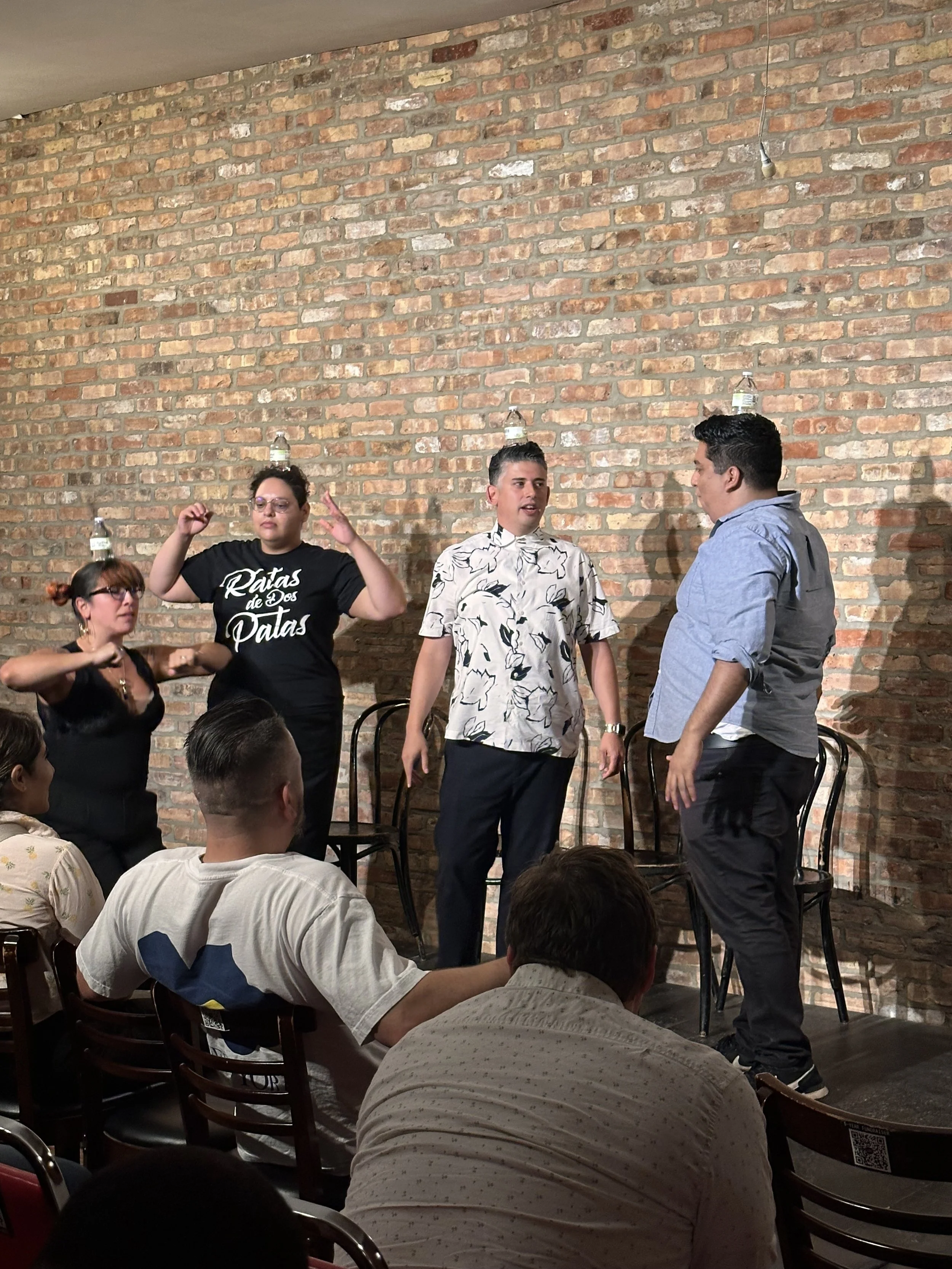 Whether you're looking for a co-producer, event coordinator, or to develop new artistic projects, TusTias are happy to partner with innovators from all walks of life to produce your project or event from start to finish. Using artistic strategies and the partnering entity's impact goals, we will provide a thorough and collaborative process to elevate any experience; creating core memories and leaving your audience wanting more! We have had the pleasure of collaborating with Red Bull Batalla, Chicago Latino Theater Alliance, and the Latina Comedy Festival.