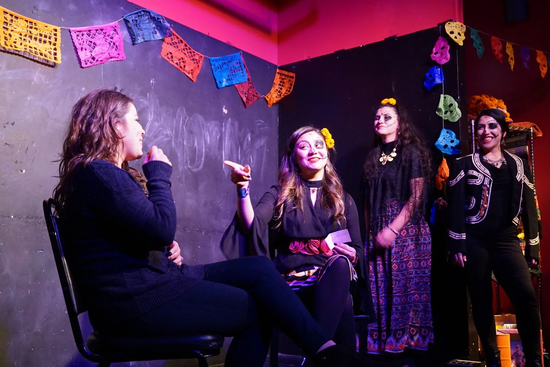 Our Día De Los Muertos experience combines the wonder of sketch comedy and improv in a show that explores global grief through the lens of comedy, rituals, and ancestry.This enchanting theatrical event celebrates, educates, uplifts, and honors the memory of the dearly departed through interactive community art as offering.